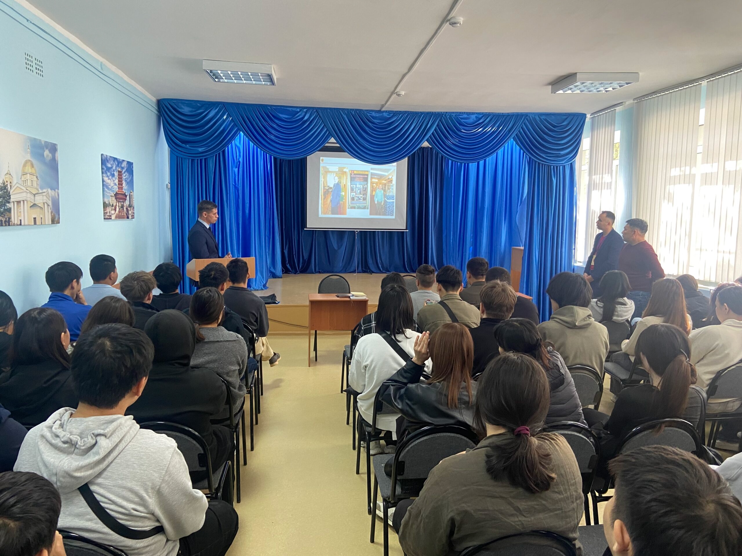 В целях патриотического воспитания 08 октября 2025 года в КФ РГУ СоцТех состоялась встреча студентов первого года обучения с доктором историческим наук, заместителем начальника 1-го управления Научно-исследовательского института военной истории Военной академии Генерального штаба Вооруженных сил Российской Федерации Е.В. Бей.Во время мероприятия Евгений Васильевич провел лекцию на тему «Путь к науке и воинской славе начинается в школе». Мероприятие состоялось в рамках II Всероссийской научной конференции «Народы России на защите Отечества», посвященной 80-летию годовщины Победы в Великой