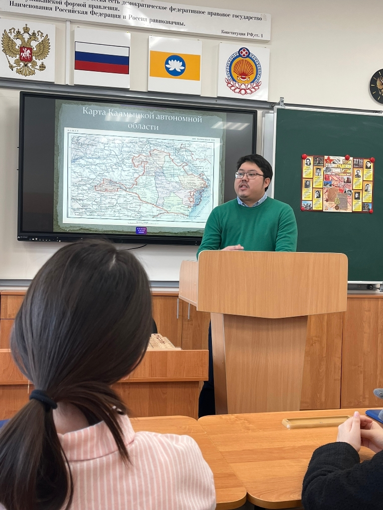 5 февраля младший научный сотрудник отдела истории КалмНЦ РАН Н. А.Шиханов провел лекцию на тему «Калмыкия в 1920-1930-ые гг.» для учащихся 10 «Г» класса Элистинского лицея. Мероприятие было приурочено ко Дню российской науки. Лицеисты ознакомились с малоизвестными страницами истории калмыцкого народа. В ходе оживленной беседы участники затронули вопросы создания Калмыцкой автономии и развития экономики, образования и медицины в предвоенные годы, предшествующие Великой Отечественной войне 1941-1945 гг. Особое внимание привлекли фотографии довоенной Элисты. Отдельные слова благодарности выражаются учителю истории и обществознанию К. Э. Манцевой.
